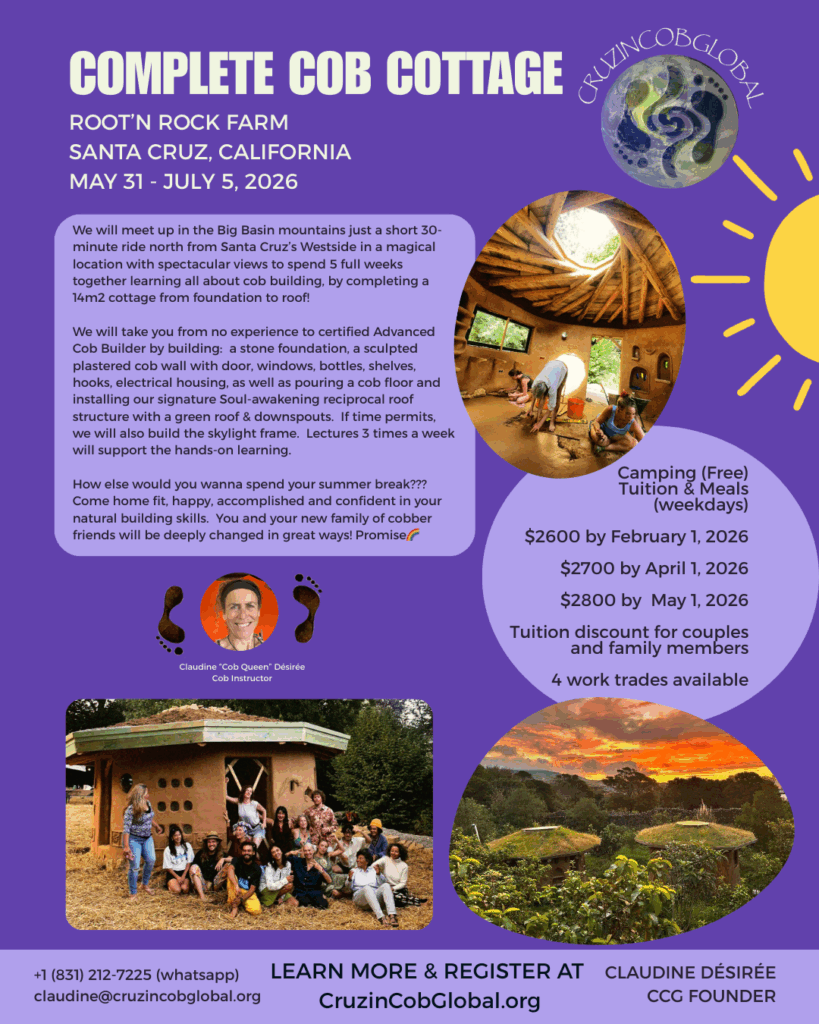 SAVE THE DATES FOR OUR UPCOMING “HOMECOMING” COB WORKSHOP NEXT SUMMER IN SANTA CRUZ!!!!! FEATURING THE ONE AND ONLY “COB QUEEN” COMIN’HOME TO WHERE IT ALL BEGAN!!!